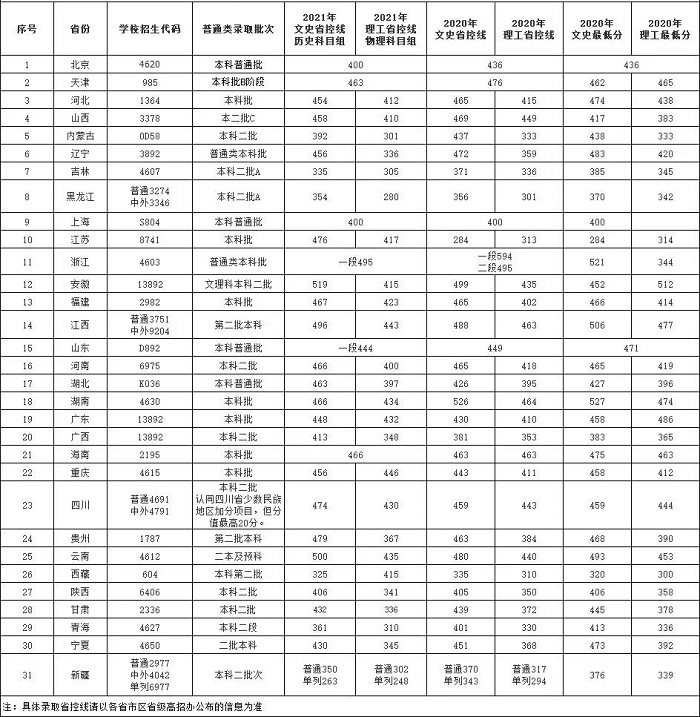 2021年各省市招生省控线一览表最新情况,仅供报考的考生参考!